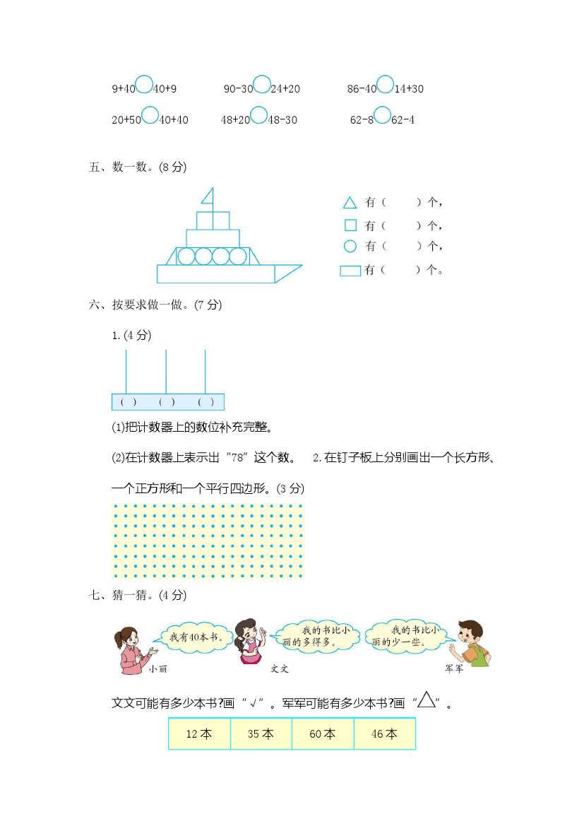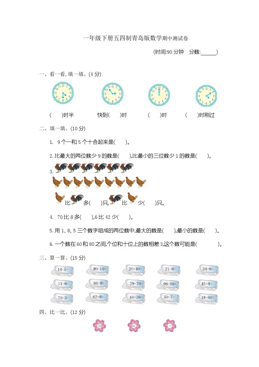 首页 > 全部 > 通用汇总 > 一(下)青岛版数学期中检测卷.1(54制)