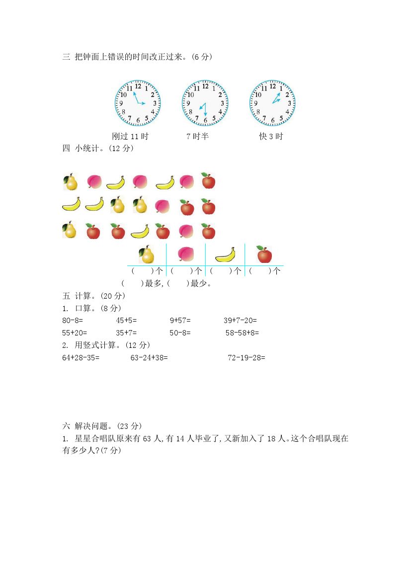 首页 > 全部 > 通用汇总 > 一(下)青岛版数学期末检测卷.2(54制)