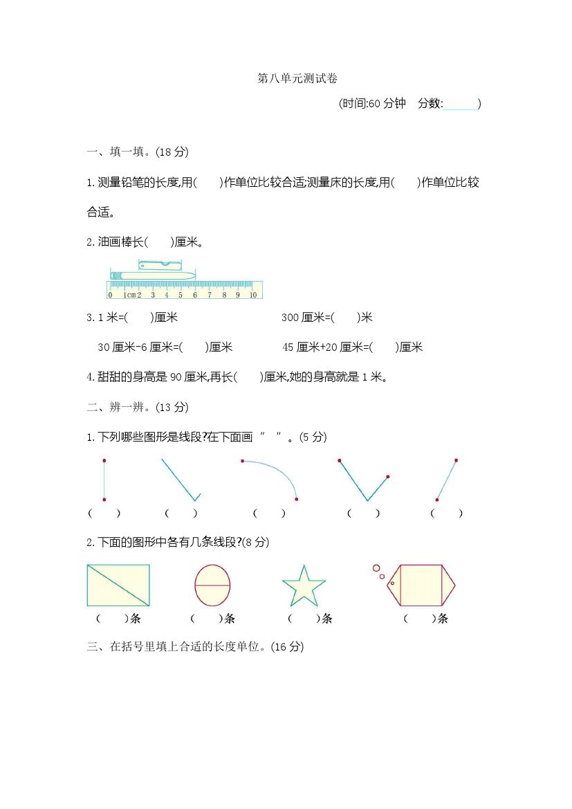 首页 > 全部 > 人教版 > 一(下)青岛版数学第八单元检测卷.1(54制)